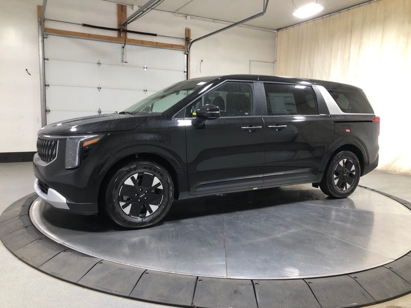 Aurora Black Pearl 2026 Kia Carnival Hybrid LXS FWD 6-Speed Automatic 1.6L I4 DGI Hybrid Turbocharged DOHC 16V LEV3-SULEV30 **Alloy Wheels**, **Adaptive Cruise Control**, **Lane Keep Assist**, **Backup Camera**, **Android Auto/ Apple Carplay**, **Blind Spot Detection**, **Bluetooth**, **Heated Seats**, **Navigation!!**, **Remote Start**, 1.6L I4 DGI Hybrid Turbocharged DOHC 16V LEV3-SULEV30, 17" Alloy Wheels, 3rd row seats: split-bench, 4-Wheel Disc Brakes, 6 Speakers, ABS brakes, Air Conditioning, Alloy wheels, AM/FM radio: SiriusXM, Apple CarPlay & Android Auto, Artificial Leather Seat Trim, Auto High-beam Headlights, Automatic temperature control, Brake assist, Bumpers: body-color, Carpeted Floor Mats (8-Passenger), Compass, Delay-off headlights, Driver door bin, Driver vanity mirror, Dual front impact airbags, Dual front side impact airbags, Electronic Stability Control, Emergency communication system, Exterior Parking Camera Rear, Four wheel independent suspension, Front anti-roll bar, Front Bucket Seats, Front Center Armrest, Front dual zone A/C, Front reading lights, Fully automatic headlights, Heated door mirrors, Heated Front Bucket Seats, Heated front seats, Illuminated entry, Knee airbag, Leather steering wheel, Low tire pressure warning, Navigation System, Occupant sensing airbag, Outside temperature display, Overhead airbag, Overhead console, Panic alarm, Passenger door bin, Passenger vanity mirror, Power door mirrors, Power driver seat, Power steering, Power windows, Rear air conditioning, Rear anti-roll bar, Rear reading lights, Rear window defroster, Rear window wiper, Reclining 3rd row seat, Remote keyless entry, Security system, Speed control, Speed-sensing steering, Split folding rear seat, Spoiler, Steering wheel mounted audio controls, Tachometer, Telescoping steering wheel, Tilt steering wheel, Traction control, Trip computer, Turn signal indicator mirrors, Variably intermittent wipers.
