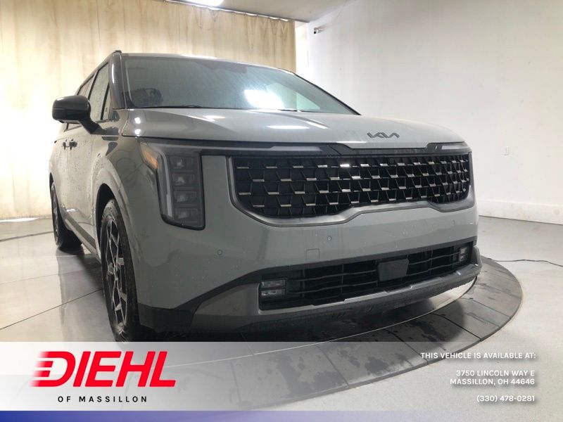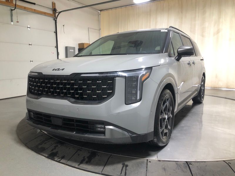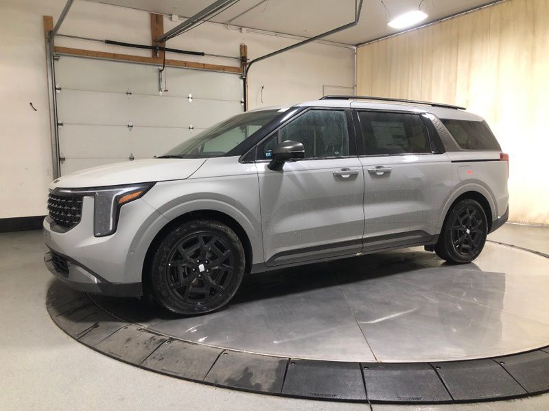 Ceramic Silver 2026 Kia Carnival SX Prestige FWD 8-Speed Automatic V6 **Alloy Wheels**, **Adaptive Cruise Control**, **Lane Keep Assist**, **Backup Camera**, **Android Auto/ Apple Carplay**, **Blind Spot Detection**, **Bluetooth**, **Heated Seats**, **Cooled Seats**, **Navigation!!**, **Sunroof**, **Remote Start**, 12 Speakers, 3.51 Axle Ratio, 3rd row seats: split-bench, 4-Wheel Disc Brakes, ABS brakes, Air Conditioning, Alloy wheels, AM/FM radio: SiriusXM, Apple CarPlay & Android Auto, Auto High-beam Headlights, Auto-dimming Rear-View mirror, Automatic temperature control, Brake assist, Bumpers: body-color, Carpeted Floor Mats (8-Passenger), Compass, Delay-off headlights, Driver door bin, Driver vanity mirror, Dual front impact airbags, Dual front side impact airbags, Electronic Stability Control, Emergency communication system, Exterior Parking Camera Rear, Four wheel independent suspension, Front anti-roll bar, Front Bucket Seats, Front Center Armrest, Front dual zone A/C, Front fog lights, Front reading lights, Fully automatic headlights, Garage door transmitter: HomeLink, Heads-Up Display, Heated door mirrors, Heated front seats, Heated steering wheel, Illuminated entry, Knee airbag, Leather Shift Knob, Leather steering wheel, Low tire pressure warning, Memory seat, Navigation System, Occupant sensing airbag, Outside temperature display, Overhead airbag, Overhead console, Panic alarm, Passenger door bin, Passenger vanity mirror, Power 2nd-Row Moonroof, Power door mirrors, Power driver seat, Power Liftgate, Power moonroof, Power passenger seat, Power steering, Power windows, Pure Leather Seat Trim, Radio: AM/FM/HD Audio System, Rain sensing wipers, Rear air conditioning, Rear anti-roll bar, Rear reading lights, Rear window defroster, Rear window wiper, Reclining 3rd row seat, Remote keyless entry, Security system, Speed control, Speed-sensing steering, Split folding rear seat, Spoiler, Steering wheel mounted audio controls, Tachometer, Telescoping steering wheel, Tilt steering wheel, Traction control, Trip computer, Turn signal indicator mirrors, Variably intermittent wipers, Ventilated front seats, Wheels: 7.5J x 19" Alloy Dark Edition.