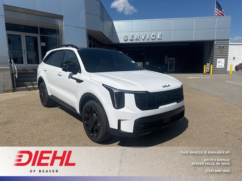 AWD. Glacial White Pearl 2026 Kia Sorento X-Line SX Prestige AWD 8 Speed Dual Clutch 2.5L I4 DGI Turbocharged DOHC 16V LEV3-SULEV30 281hp