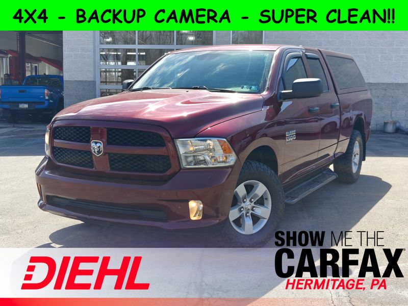 Recent Arrival! **CLEAN CARFAX**, **FOUR WHEEL DRIVE**, **BACKUP CAMERA**, **ALLOY WHEELS**, ** REMOTE START**, **PAINT MATCHED BED CAP**, **3RD PARTY TRAILER BRAKE CONTROLLER**, **BED RUG INSTALLED**, 1500 Classic Express, 4WD, 17" x 7" Aluminum Wheels, Body Color Front Fascia, Body Color Grille, Body Color Rear Bumper w/Step Pads, Carpet Floor Covering, Center Hub, Cloth 40/20/40 Bench Seat, Delay-off headlights, Delete Class IV Receiver Hitch, Delete Spray In Bedliner, Front Floor Mats, Front Fog Lamps, Fully automatic headlights, Manual Adjust Seats, ParkView Rear Back-Up Camera, Popular Equipment Group, Quick Order Package 22J Express, Ram 1500 Express, Rear Floor Mats, Rear Folding Seat, Remote Keyless Entry w/All-Secure.