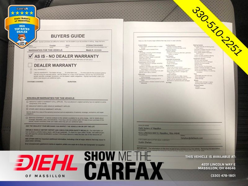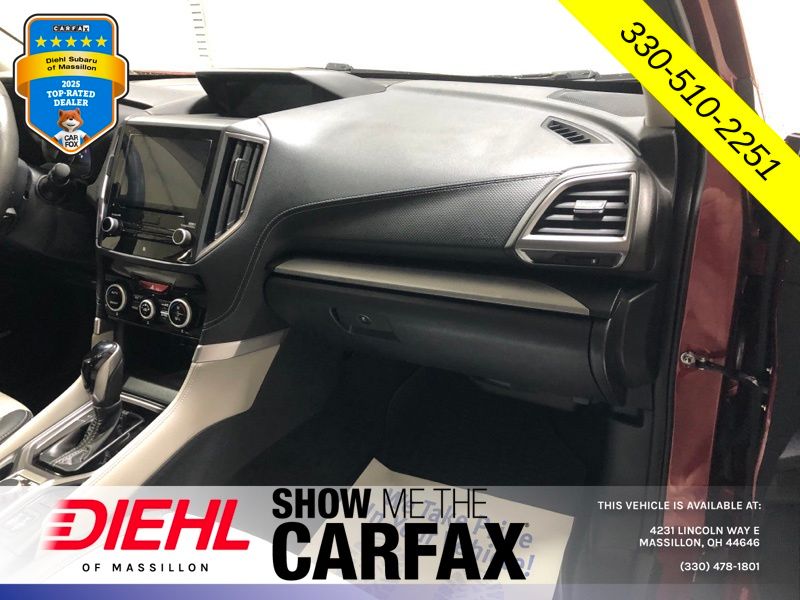 All-Weather Floor Liners, Auto-Dimming Exterior Mirror w/Approach Lighting, Auto-Dimming Mirror w/Compass & HomeLink, Cargo Net, Dome Light LED Upgrade, harman kardon 576W Amp & Speaker System, Heated Steering Wheel, Nav System & harman kardon & Reverse Auto Braking, Navigation System, Popular Package #3, Radio: Subaru Starlink 8.0" Multimedia Nav System, Rear Bumper Cover, Reverse Automatic Braking System (RAB). 2019 Subaru Forester Limited CARFAX One-Owner. Clean CARFAX.