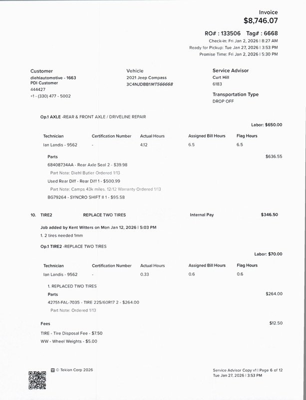- P225/60TR17 AS BSW front and rear tires