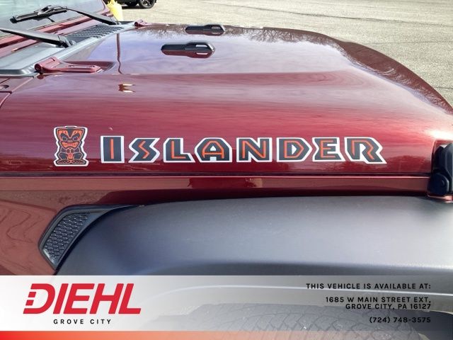 *BACK UP CAMERA*, **4X4**, 4-Wheel Disc Brakes, 7.0" Touchscreen Display, ABS brakes, Air Conditioning w/Auto Temperature Control, Air Filtering, Apple CarPlay, Automatic Headlamps, Ceramic White I/P Bezels, Cloth Seats w/Islander Logo (DISC), Cluster 7.0" TFT Color Display, Cold Weather Group, Convenience Group, Deep Tint Sunscreen Windows, Dual front impact airbags, Dual front side impact airbags, For More Info Call 800-643-2112, Front 1-Touch Down Power Windows, Front anti-roll bar, Google Android Auto, GPS Antenna Input, Heated Front Seats, Heated Steering Wheel, Integrated Center Stack Radio, Integrated roll-over protection, Islander Hood Decal, Islander Package, Islander Swing Gate Plaque, Leather Wrapped Steering Wheel, Low tire pressure warning, Occupant sensing airbag, Power Heated Mirrors, Quick Order Package 22J Islander (DISC), R1234YF A/C Refrigerant, Radio: Uconnect 4 w/7" Display, Rear anti-roll bar, Remote Keyless Entry, Security Alarm, Selectable Tire Fill Alert, Silver Jeep Badges, SiriusXM Radio Service, SiriusXM Satellite Radio, Speed Sensitive Power Locks, Sun Visors w/Illuminated Vanity Mirrors, Technology Group, Universal Garage Door Opener, USB Host Flip, Wheels: 17" x 7.5" Silver Aluminum (DISC), Wrangler Decal. Recent Arrival! CARFAX One-Owner. Clean CARFAX.