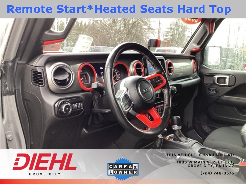 Technology is handled with confidence thanks to Apple CarPlay, Android Auto, Bluetooth connectivity, backup camera, steering wheel audio controls, and smart device integration that keeps your playlists and navigation right where you want them. Outside, the Sahara stands tall with aluminum wheels, all-terrain tires, fog lamps, running boards, privacy glass, and the iconic removable hardtop with rear defrost and targa-style panels for open-air driving whenever the mood strikes.