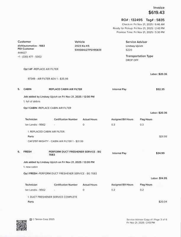 - Cabin air filter