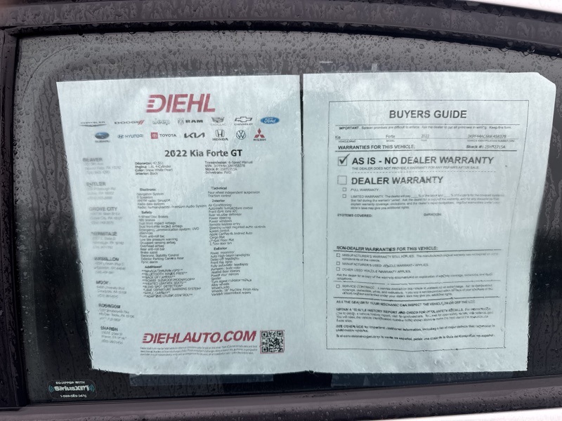 Diehl Automotive utilizes a system that generates market value pricing automatically for new and pre-owned vehicles and may cause errors, inaccuracies, or omissions. Some aftermarket additions or accessories may not be displayed properly. For accuracy, please contact the dealer for real-time, accurate pricing. A documentation fee of $477 applies and is not included in the pricing. Tax, Title, and Tags are also not included and must be paid by the purchaser. Some prices may include manufacturer-to-dealer offers that are not compatible with manufacturer special finance programs and/or lease offers. While great effort is made to ensure the accuracy of the information on this site, errors do occur so please verify information with a customer service rep. This is easily done by calling us at (724) 846-1441 or by visiting us at the dealership.