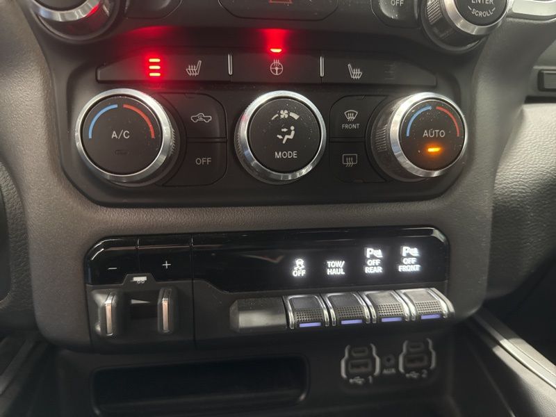 Finished in Diamond Black Crystal Pearl Coat with a spacious Crew Cab, this truck brings both attitude and comfort. Inside, you are greeted by a massive 8.4 inch touchscreen with Apple CarPlay and Android Auto, heated seats, heated steering wheel, and power adjustable pedals so you can dial in your perfect driving position like a pro. The Big Horn Level 2 Equipment Group takes things up a notch with remote start, dual zone climate control, and a premium interior that makes long drives feel like short ones.