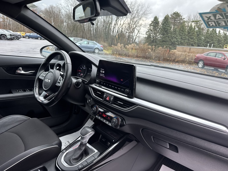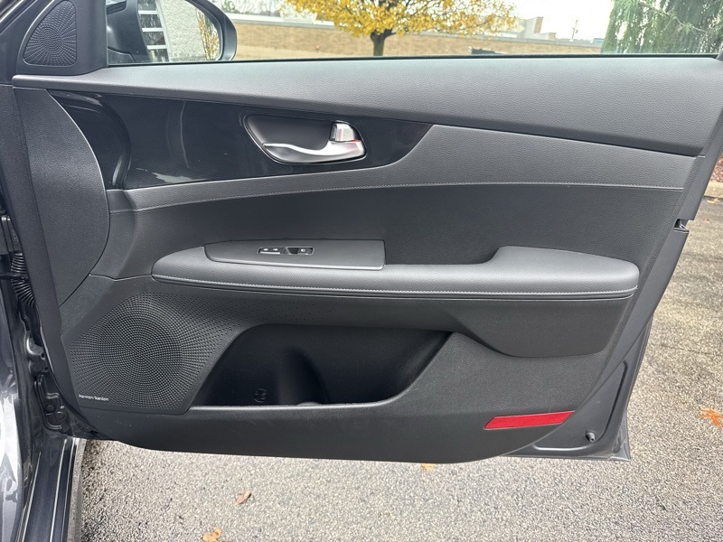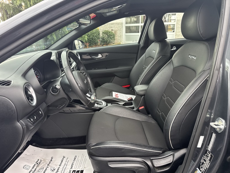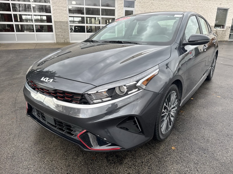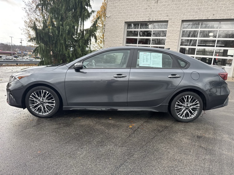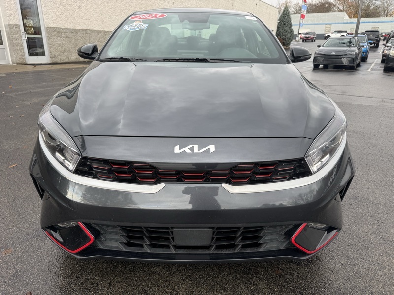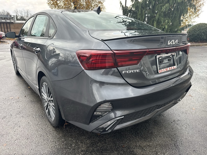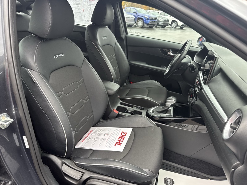 Gravity Gray 2023 Kia Forte GT-Line 4D Sedan FWD 2.0L I4 MPI CVT GT-Line Premium Package (Electronic Parking Brake (EPB), Forward Collision Avoidance-Assist - Cyclist, LED Interior Lighting, Navigation-Based Smart Cruise Control (NSCC), Power Sunroof, Radio: harman kardon Premium Audio, Smart Cruise Control w/Stop & Go, and Wireless Charging), Forte GT-Line, Gravity Gray, 4-Wheel Disc Brakes, ABS brakes, Apple CarPlay & Android Auto, Auto High-beam Headlights, Automatic temperature control, Delay-off headlights, Exterior Parking Camera Rear, Front dual zone A/C, Front fog lights, Fully automatic headlights, Low tire pressure warning, Navigation System, Telescoping steering wheel, Tilt steering wheel, 17" x 7.0J Alloy Wheels, 6 Speakers, Air Conditioning, Alloy wheels, AM/FM radio: SiriusXM, Brake assist, Bumpers: body-color, Cloth & SynTex Seat Trim, Driver door bin, Driver vanity mirror, Dual front impact airbags, Dual front side impact airbags, Electronic Stability Control, Emergency communication system, Front anti-roll bar, Front Bucket Seats, Front Center Armrest, Front reading lights, Front wheel independent suspension, Heated door mirrors, Illuminated entry, Leather Shift Knob, Leather steering wheel, Occupant sensing airbag, Outside temperature display, Overhead airbag, Overhead console, Panic alarm, Passenger door bin, Passenger vanity mirror, Power door mirrors, Power steering, Power windows, Radio data system, Radio: 10.25" Display Audio, Rear seat center armrest, Rear window defroster, Remote keyless entry, Security system, Speed control, Split folding rear seat, Spoiler, Sport steering wheel, Steering wheel mounted audio controls, Tachometer, Traction control, Trip computer, Turn signal indicator mirrors, and Variably intermittent wipers. 28/39 City/Highway MPG