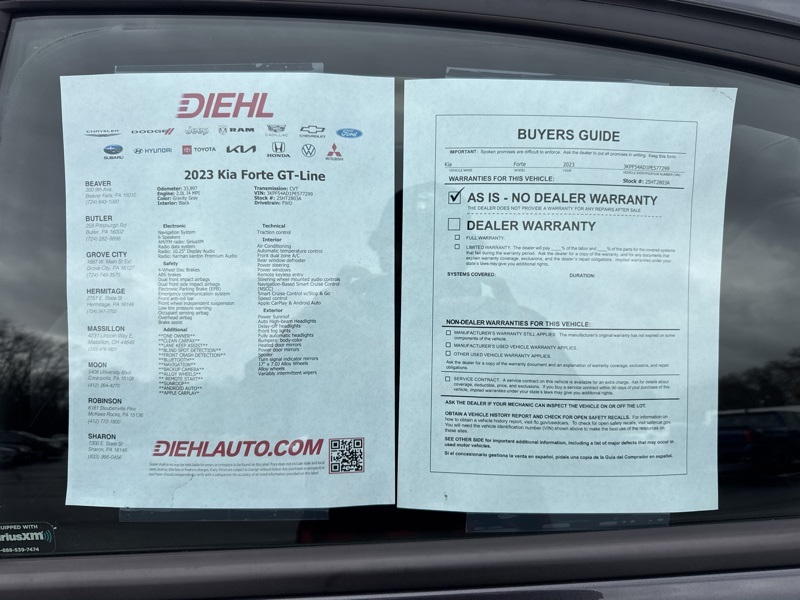 Diehl Automotive utilizes a system that generates market value pricing automatically for new and pre-owned vehicles and may cause errors, inaccuracies, or omissions. Some aftermarket additions or accessories may not be displayed properly. For accuracy, please contact the dealer for real-time, accurate pricing. A documentation fee of $477 applies and is not included in the pricing. Tax, Title, and Tags are also not included and must be paid by the purchaser. Some prices may include manufacturer-to-dealer offers that are not compatible with manufacturer special finance programs and/or lease offers. While great effort is made to ensure the accuracy of the information on this site, errors do occur so please verify information with a customer service rep. This is easily done by calling us at (724) 846-1441 or by visiting us at the dealership.