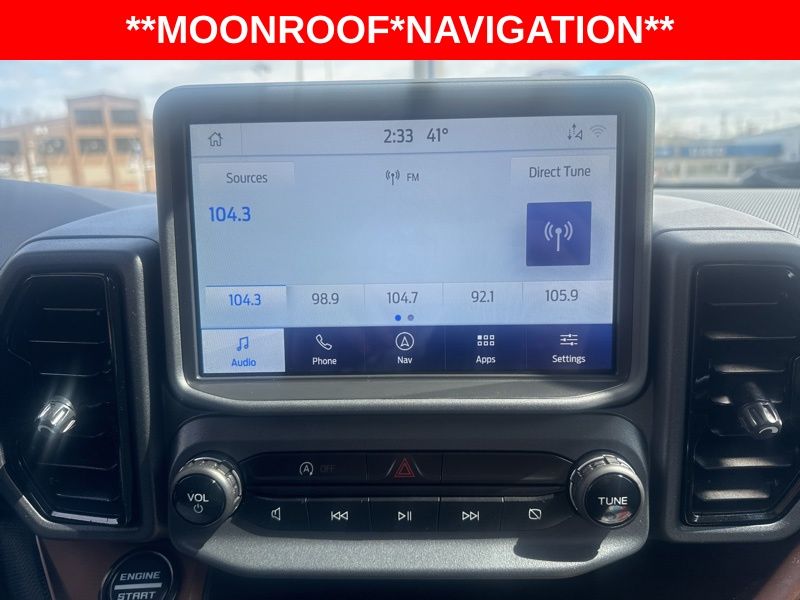 **BACK UP SENSOR**, *KEYLESS START*, **BACK UP CAMERA**, **ANDROID AUTO**, **APPLE CAR PLAY**, **MOONROOF**, **NAVIGATION**, **ONE OWNER**, **POWER DRIVERS SEAT**. Desert Sand 2024 Ford Bronco Sport Outer Banks 4WD 8-Speed Automatic 1.5L EcoBoost