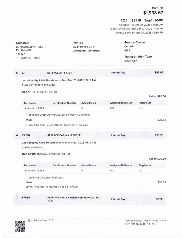 - Cabin air filter