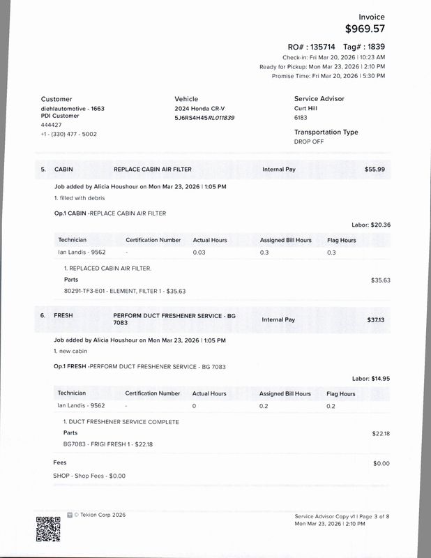 - Cabin air filter